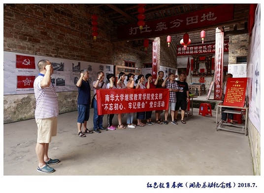 7月20日至7月22日,继续教育华体会平台党支部组织支部11名党员开展了“不忘初心,牢记使命”的支部活动,全体党员参观了红色流华湾、资兴市苏维埃政府旧址、移民博物馆,回顾湘南起义波澜壮阔的红色历史画卷,支部全体党员在资兴苏维埃政府旧址重温了入党誓词,支部书记曾庆生同志给大家上了“不忘初心,牢记使命”党课。